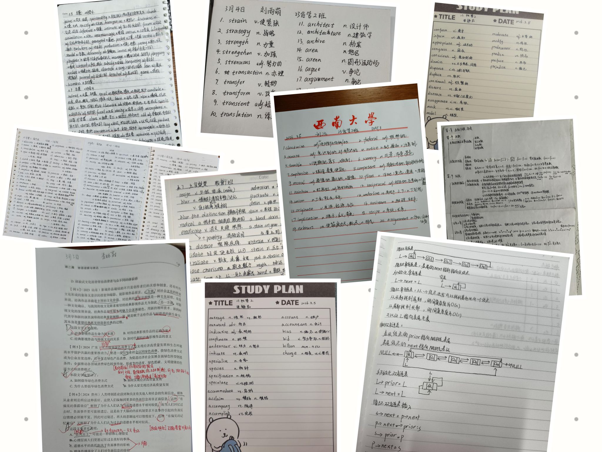 为持续推进年级学风建设,学院2023级在前期工作基础上,进一步深化“分类学习打卡计划”,每周定期推送英语、数学、行测等针对性学习内容,积极鼓励学生每日整理学习笔记、交流心得感悟。活动依托线上平台,搭建起学生间相互督促、互帮互助、共同进步的学习共同体,助力学生在日积月累中锤炼自律品格、夯实专业基础、提升学习能力。自活动开展以来,累计参与人数达400余人次,收集的学习笔记内容详实、形式多样,涵盖考研数学、行测申论等重点备考领域,充分展现了同学们脚踏实地、孜孜以求、奋勇争先的良好求学风貌。